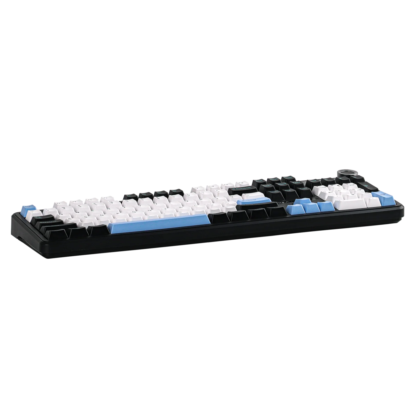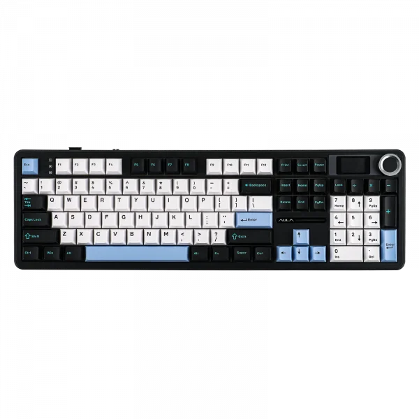 So với các dòng phím đang đi theo thiết kế tinh gọn, cắt giảm layout thì Aula F108 Pro là bàn phím cơ “đầy đủ” về mọi mặt. Layout fullsize không thiếu nút nào, tích hợp thêm cả núm xoay vật lý để tinh chỉnh âm lượng, màn hình TFT hiển thị ngày tháng, phần trăm pin, chế độ kết nối và cho phép tải ảnh GIF thông qua phần mềm Driver.